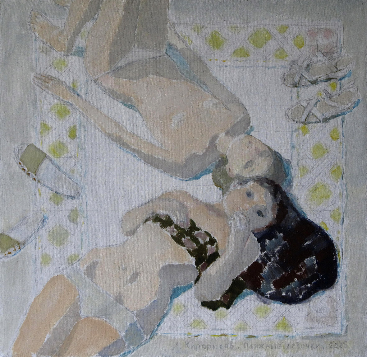 "Пляжные девочки". 2025г. х.м. 70х70см